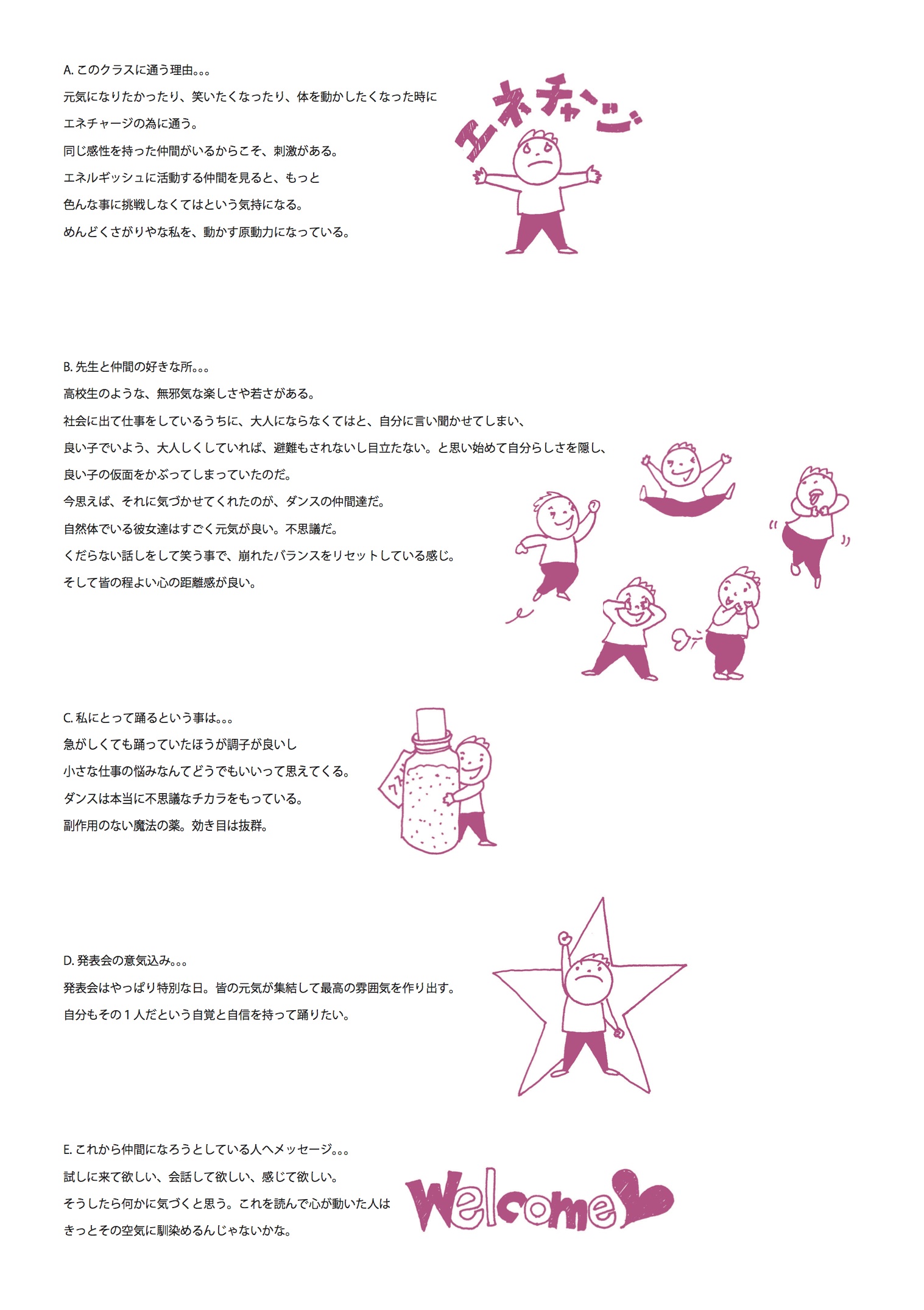 発表会に参加した生徒のひとりが、仲間たちとダンスクラスのことをあるカタチで伝えてくれた。