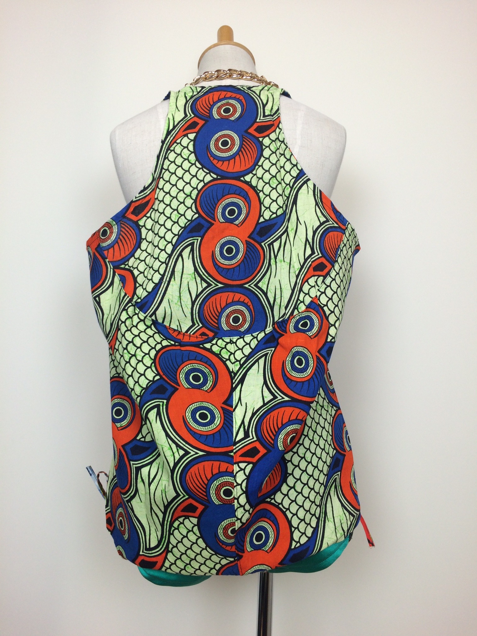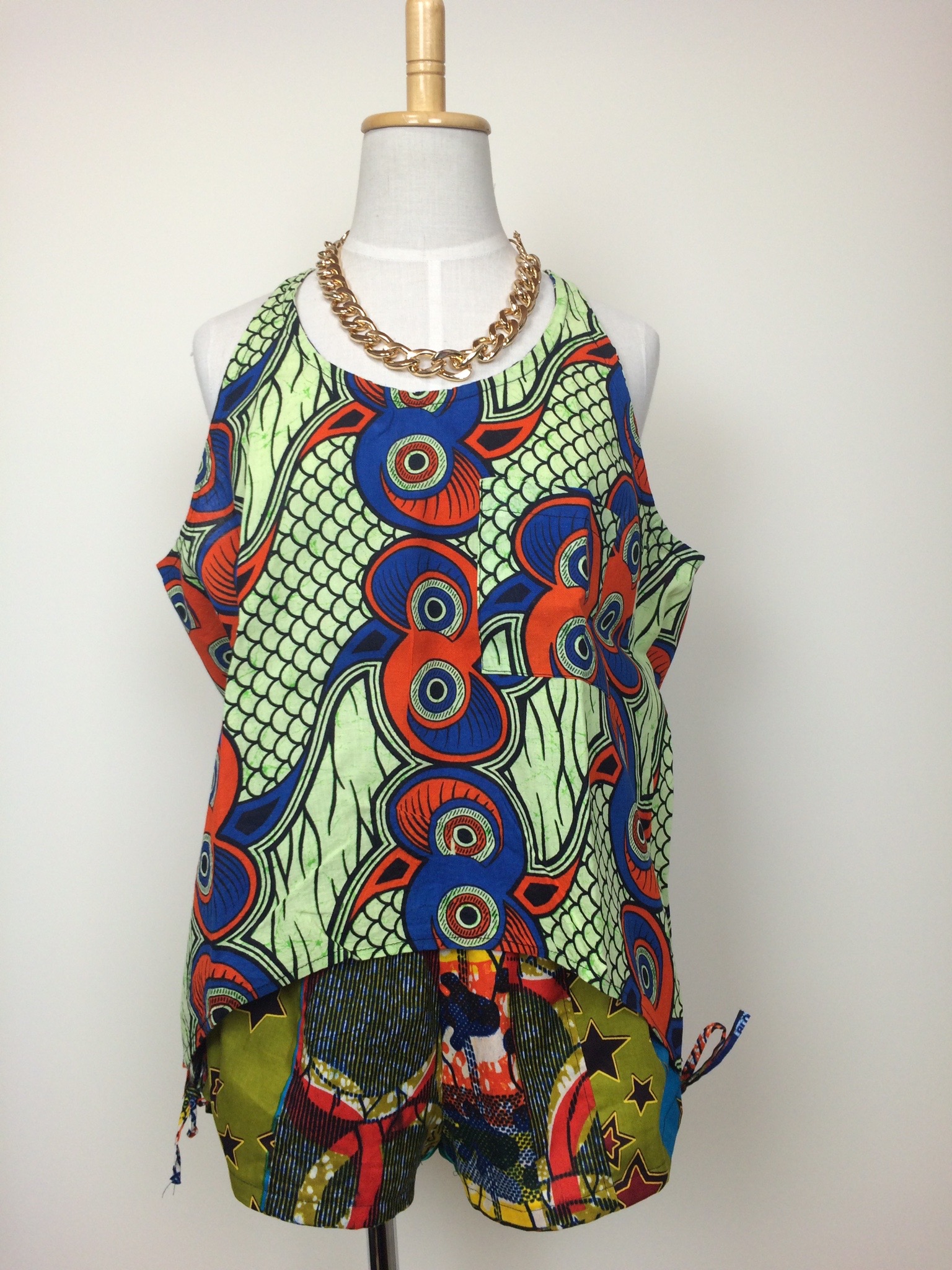 instagramやfacebookでもかわいいと絶賛のファティマートのアフリカプリントのビスチェ。
