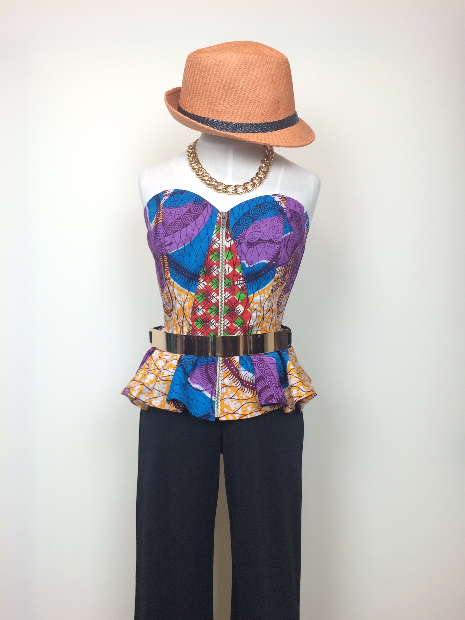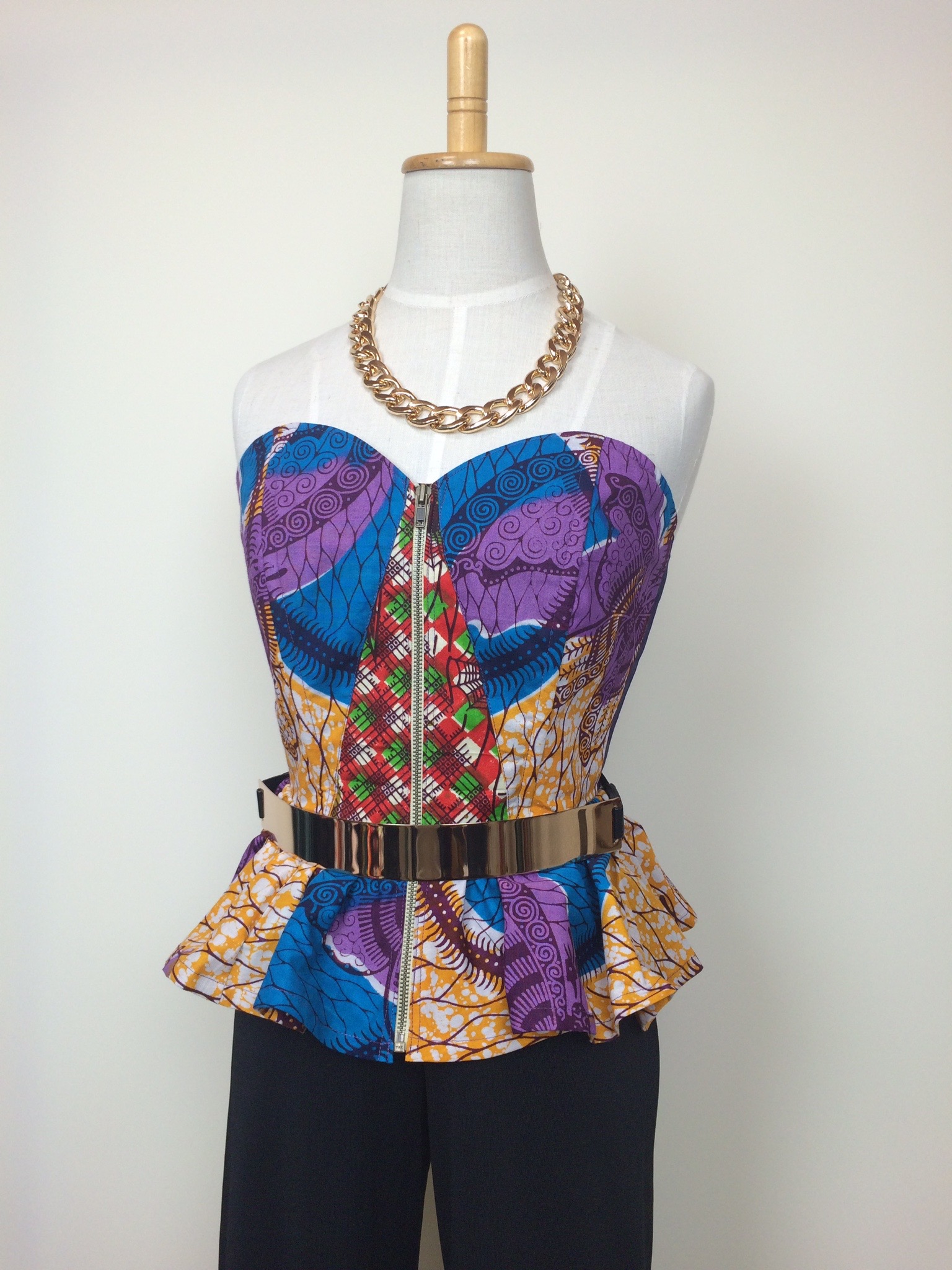 超かわいいと大絶賛のアフリカプリントのペプラムビスチェ