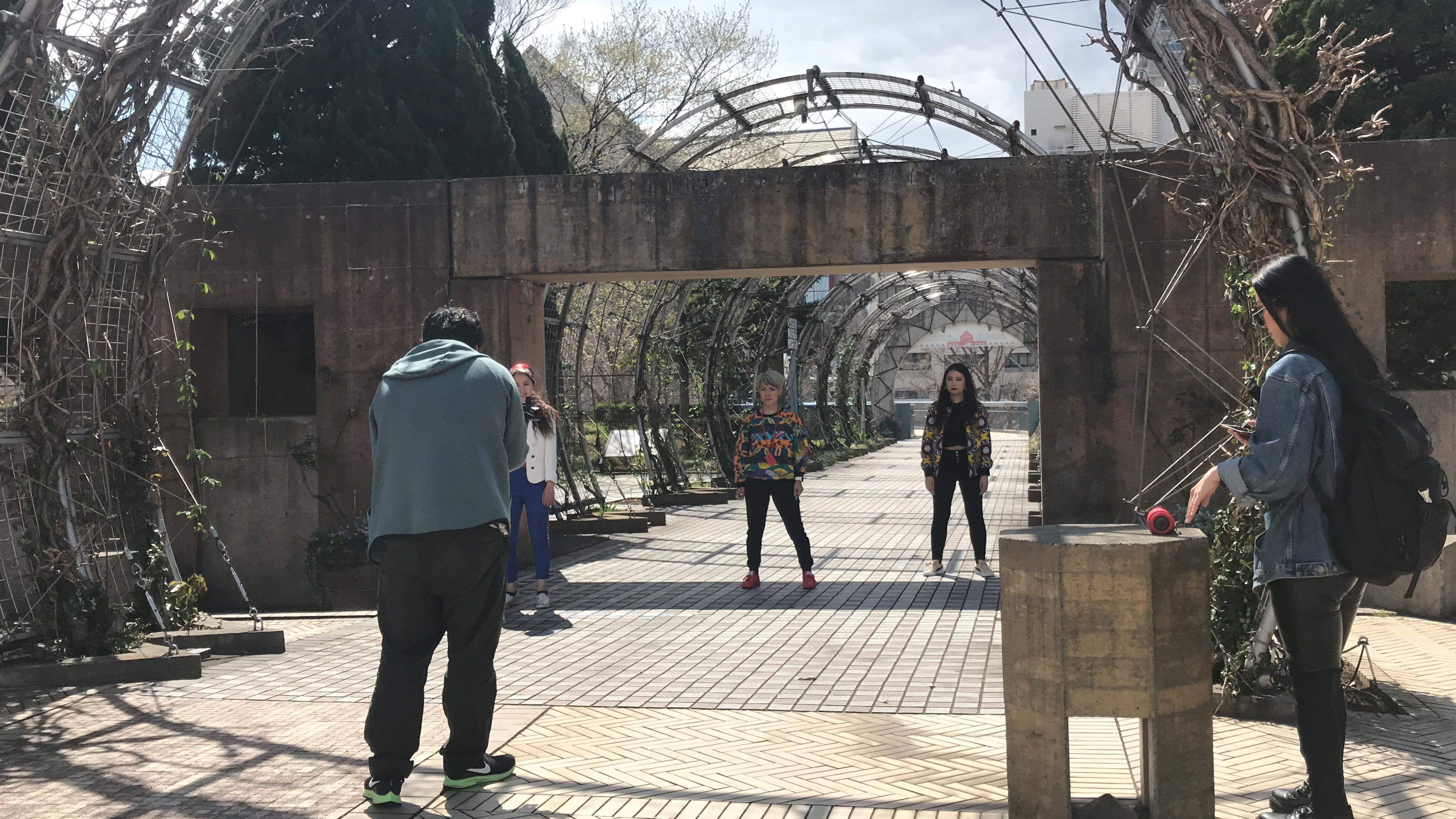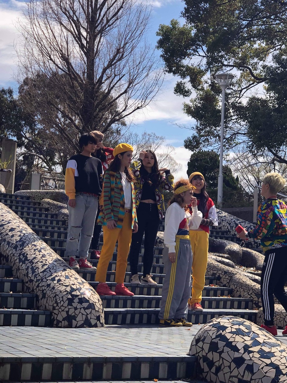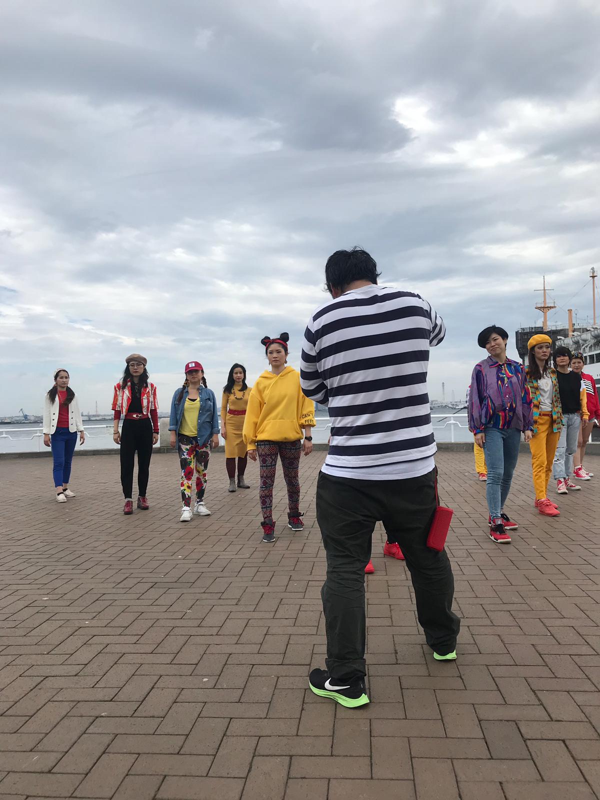 ダンスの動きやフォーメーションに合わせて、Norimakiさんに指示し、一緒に動いて撮影してもらう。