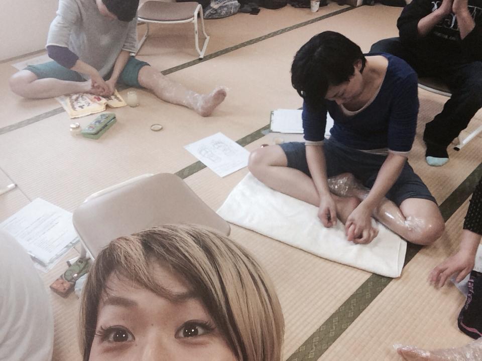 その後、シアバターを使って膝からふくらはぎから足首、足の裏とマッサージ。