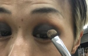 ⑦黒のシャドウを目のキワから乗せて山うえに向かってなじませる。