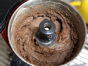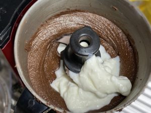 1、ピーナッツとココアとミルクをフードプロセッサーに入れ、ペースト状になるまで回す。(ピーナッツに油分が含まれているので水分を足さなくてもペースト状になります。)
