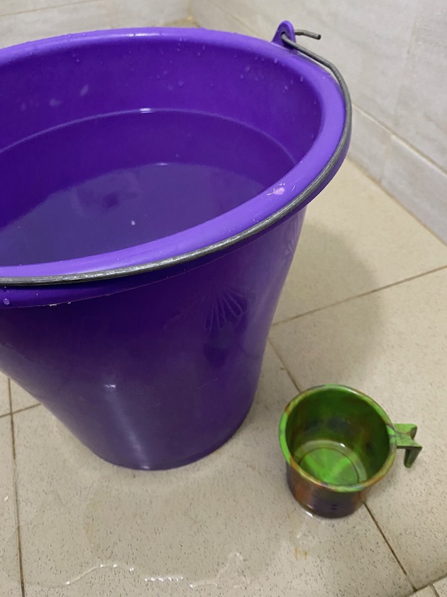 置いてあるのは、水が張ってあるバケツとそれを汲む用のカップ。