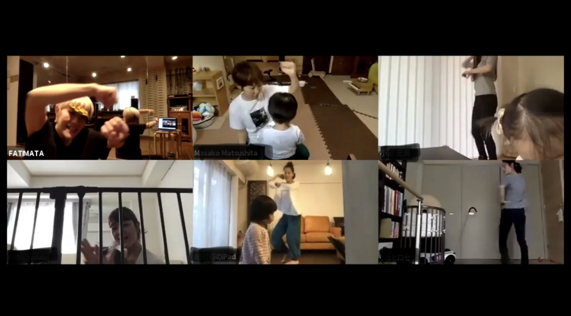 みんなが同じ状況なので、カメラ越しにお互いのちびっこたちに手を振りながら、微笑ましくレッスンが進む。