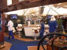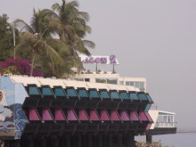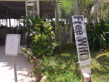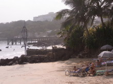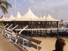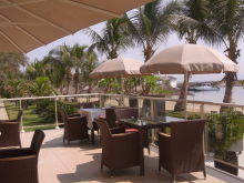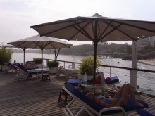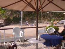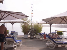 船のデッキを思わせる海の上にせり出したテラスは風が心地よく、白人たちが優雅に食事をしたり寝そべったりしている。