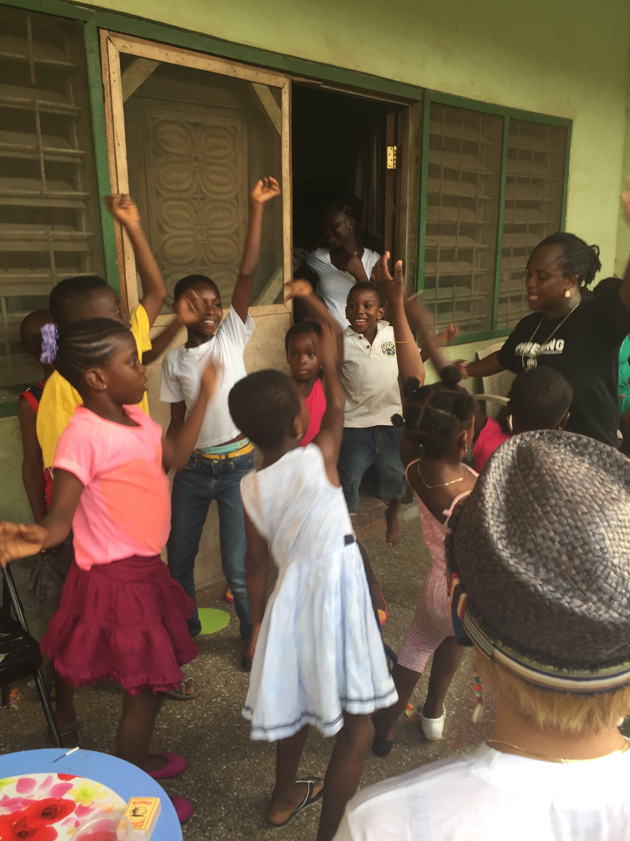最後にはガーナの子ども達と一緒に「AZONTO」という世界的に流行しているガーナの歌・ダンスを一緒に踊る♪